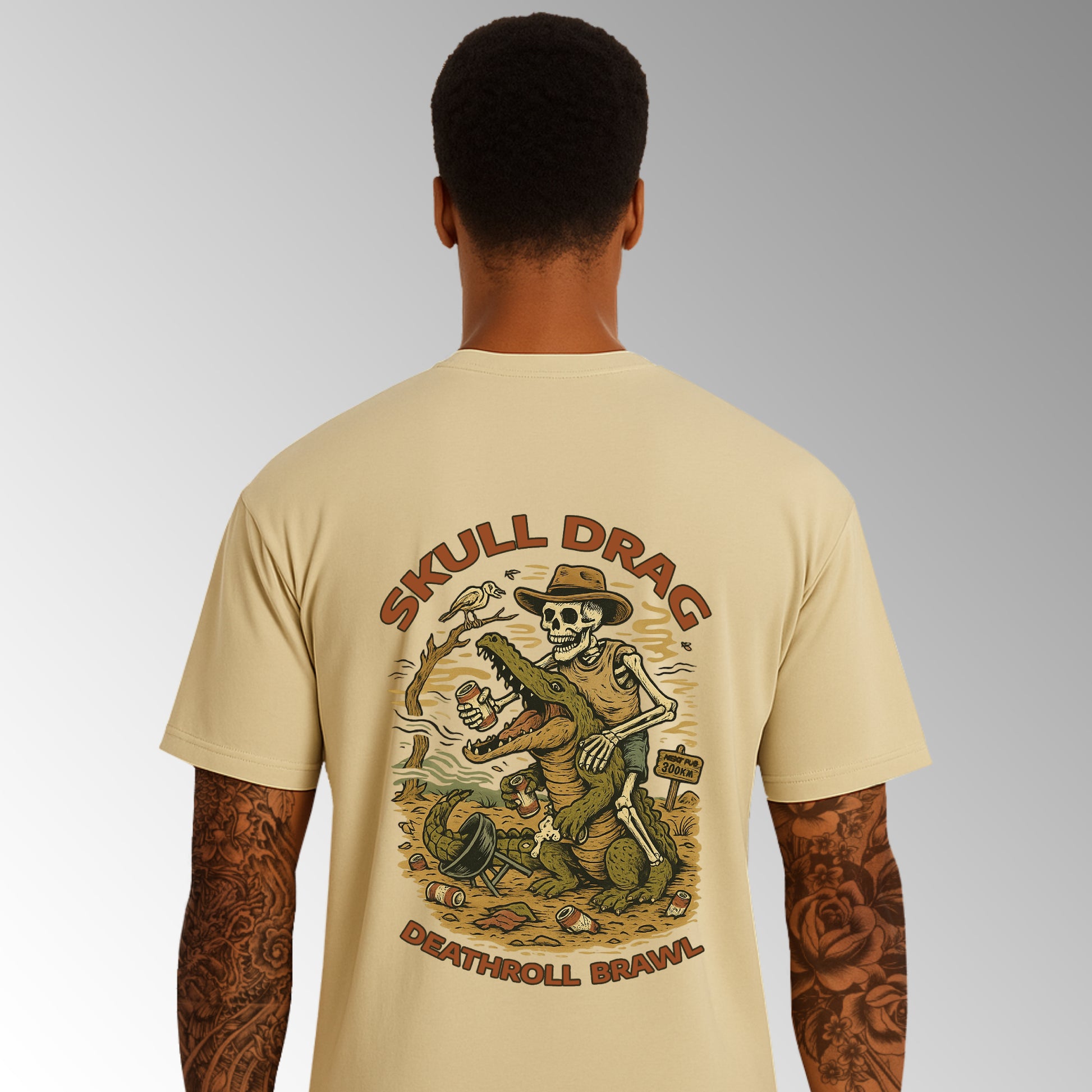 Deathroll Brawl – where crocs clash and legends surface. Made for the wild ones who don’t tap out, this tee throws down harder than a flatty in the net.